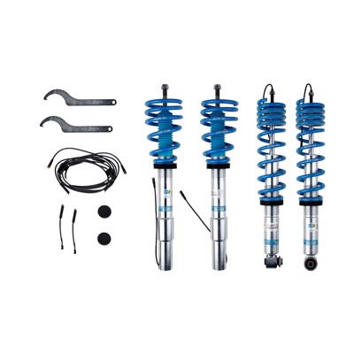 Bilstein B16 (DampTronic) suspension kits feature ride height adjustability with dampers compatible with OE electronic damping systems. All of the active features of the factory electronic suspension, along with the factory controls, will be retained with the installation of this kit. These kits offer monotube performance dampers with matched springs that are tuned for each specific application. The zinc coated and threaded body design will give you the flexibility to find the perfect ride height setting for your intended use while providing unsurpassed protection against the harshest road elements. B16 (DampTronic) suspension kits are made in Germany and feature technology tested on the famed Nurburgring.