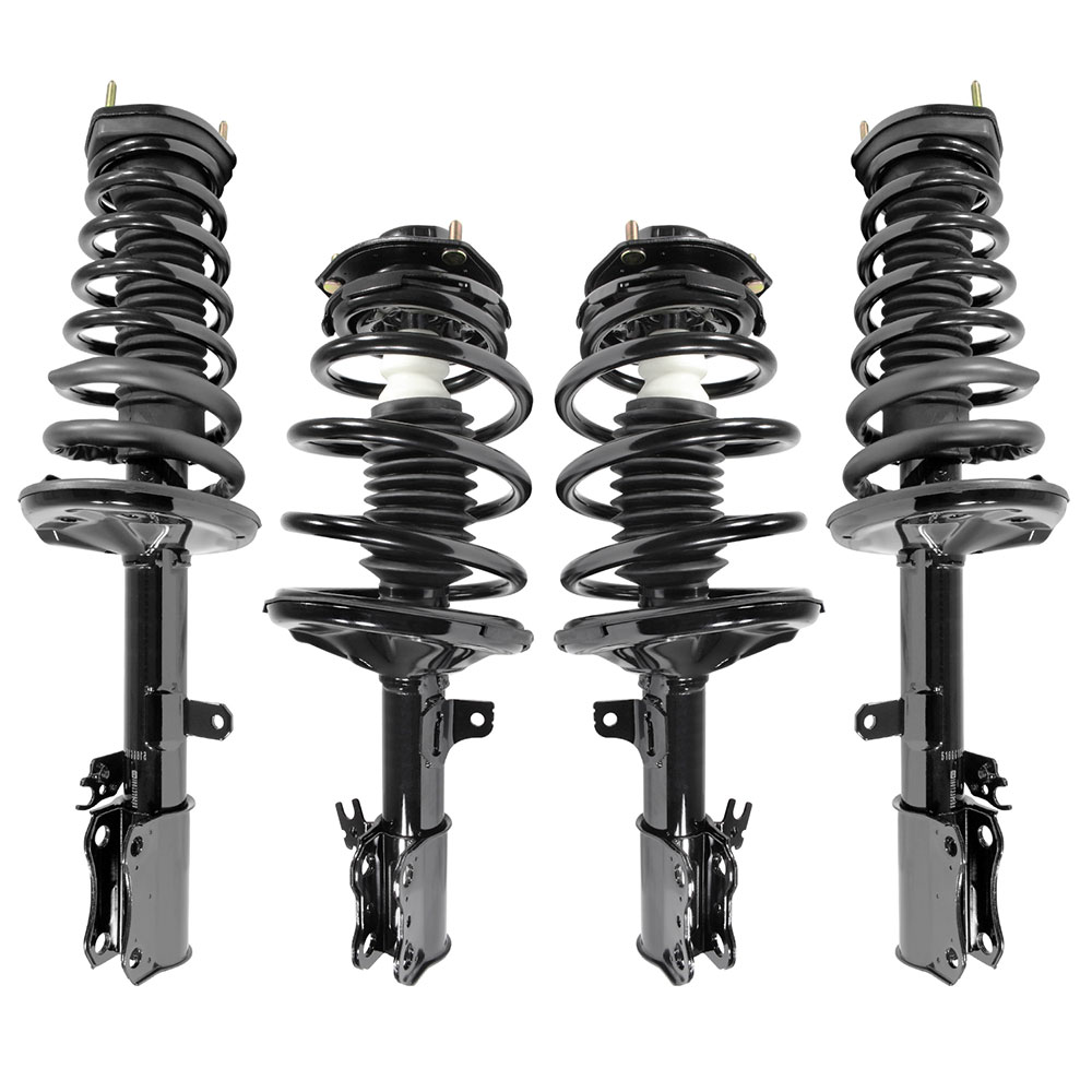 This Front and Rear Fully Loaded Driver and Passenger side Complete Strut and Coil Spring Kit is Pre-assembled with all new parts insuring you have eliminated the possibility of a faulty component going back on your Avalon, Camry, ES300 or Solara. Each strut is valved to match the OEM parts that came off your Avalon, Camry, ES300 or Solara and buying a full Front and Rear kit ensures your alignment can be performed to factory specifications and restore ride comfort in the same time.