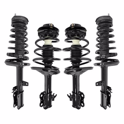 This Front and Rear Fully Loaded Driver and Passenger side Complete Strut and Coil Spring Kit is Pre-assembled with all new parts insuring you have eliminated the possibility of a faulty component going back on your Camry. Each strut is valved to match the OEM parts that came off your Camry and buying a full Front and Rear kit ensures your alignment can be performed to factory specifications and restore ride comfort in the same time.