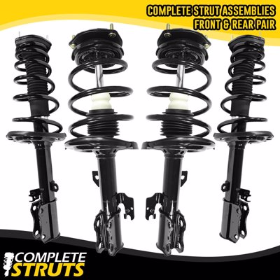 This Front and Rear Fully Loaded Driver and Passenger side Complete Strut and Coil Spring Kit is Pre-assembled with all new parts insuring you have eliminated the possibility of a faulty component going back on your Camry, ES330 or Solara. Each strut is valved to match the OEM parts that came off your Camry, ES330 or Solara and buying a full Front and Rear kit ensures your alignment can be performed to factory specifications and restore ride comfort in the same time.