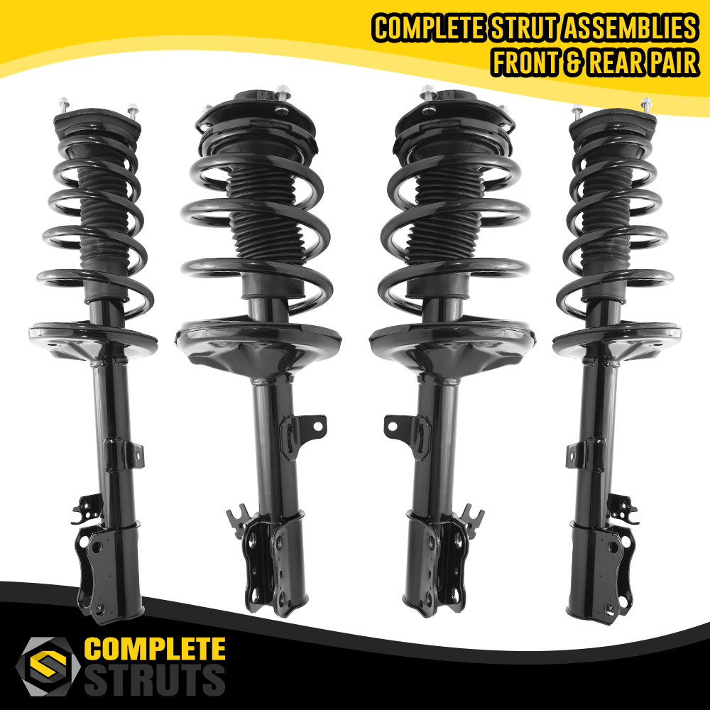 This Front and Rear Fully Loaded Driver and Passenger side Complete Strut and Coil Spring Kit is Pre-assembled with all new parts insuring you have eliminated the possibility of a faulty component going back on your RX300. Each strut is valved to match the OEM parts that came off your RX300 and buying a full Front and Rear kit ensures your alignment can be performed to factory specifications and restore ride comfort in the same time.