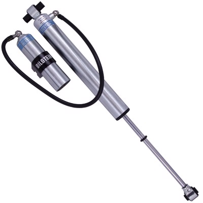 Bilstein B8 5160 remote reservoir shock absorbers are designed as a direct fit solution for lifted trucks and SUV’s. The remote reservoir will offer increased cooling capacity and wheel travel to optimize overall performance compared to a traditional shock absorber. These shock absorbers feature a monotube design for consistent fade free performance and utilize velocity sensitive digressive valve settings which are tuned for each specific application. Each shock absorber is fitted with a unique 360 degree swivel banjo hose fitting, providing a clean, low profile installation. B8 5160 remote reservoir shock absorbers will increase overall durability of your vehicle allowing you to conquer the harshest of off-road environments.