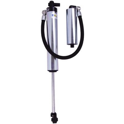 Bilstein B8 8100 reservoir shock absorbers are a large bore 60mm direct fit solution for lifted trucks and SUVs. Constructed from aerospace quality billet components, the large 60mm ID shock body offers a higher oil volume capacity to control heat while tackling rough road surfaces over long distances. Each B8 8100 offers a unique remote or piggyback reservoir solution for an easy, hassle free installation. These shock absorbers feature a monotube design for consistent fade free performance and utilize velocity sensitive digressive valve settings which are tuned for each specific application. The large 60mm piston design offers more comfort and control in all driving conditions. The Bilstein B8 8100 will allow you to tame the terrain in comfort.